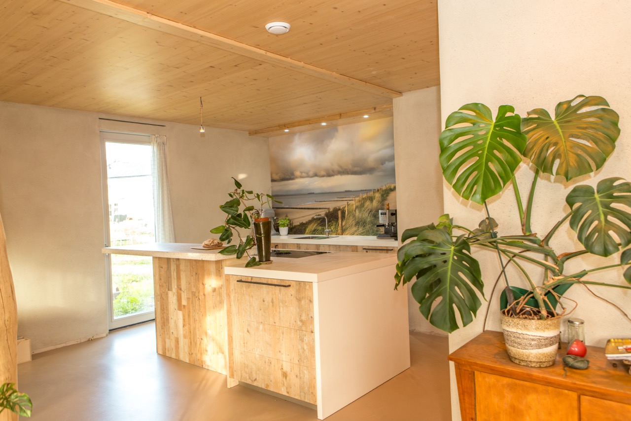 Voor de bewoners van de ecowijk Woongaard Serooskerke realiseerden we een maatwerk keuken, een op maat gemaakt LP-meubel en aangepaste deuren. Net als de bewoners, kozen wij voor natuurlijke materialen en hergebruik als uitgangspunt. Zo verwerkten we geschaafde, hergebruikte vloerdelen in een uniek keukenontwerp, creëerden we voldoende ruimte voor een grote LP-collectie en pasten we oude paneeldeuren aan naar de huidige kozijnmaten.