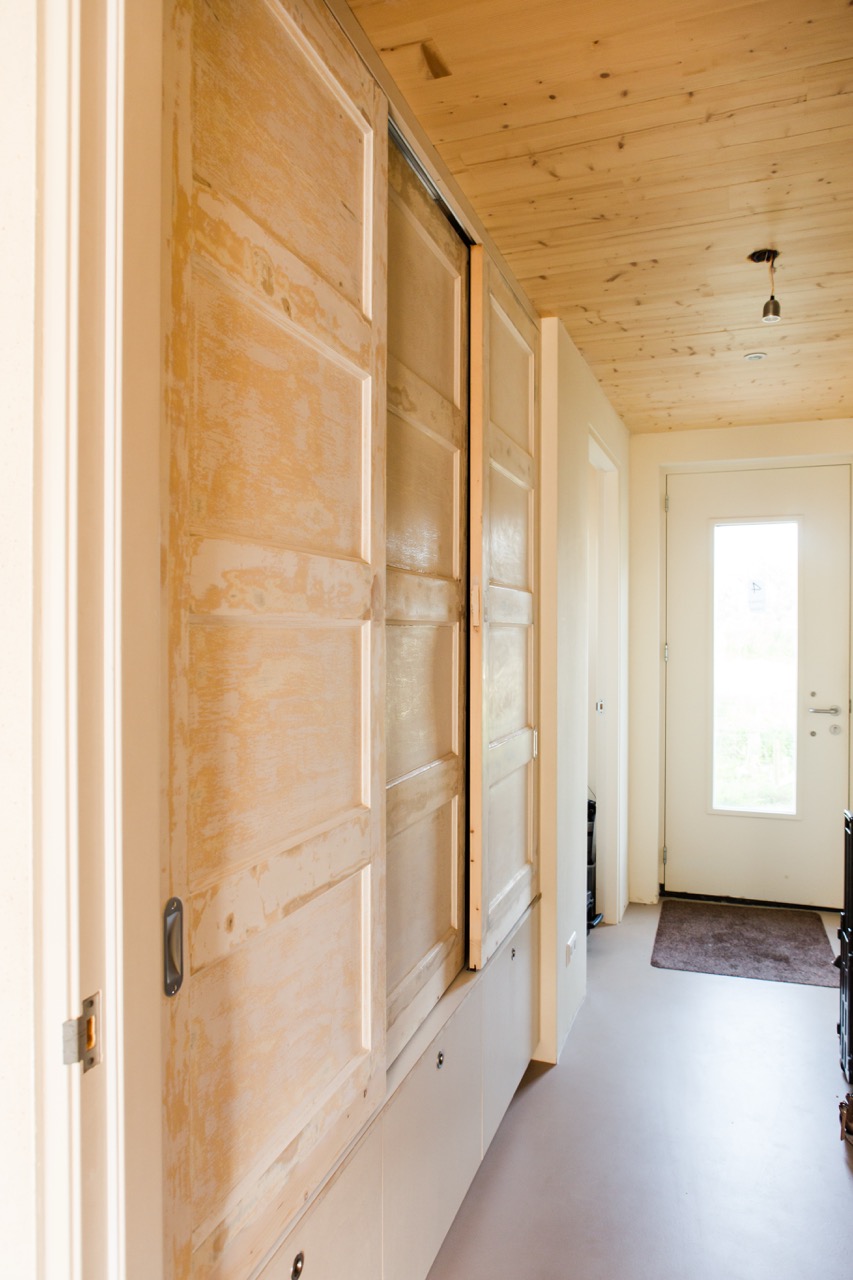 - Hergebruikte paneeldeuren – vergroot naar de huidige kozijnmaten, passend bij de stijl van de woningen